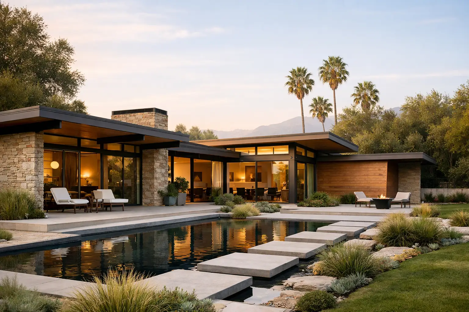 12 mid century modern house design ideas for creating warm, sculptural interiors with iconic lighting, wood tones, glass, and vintage character.